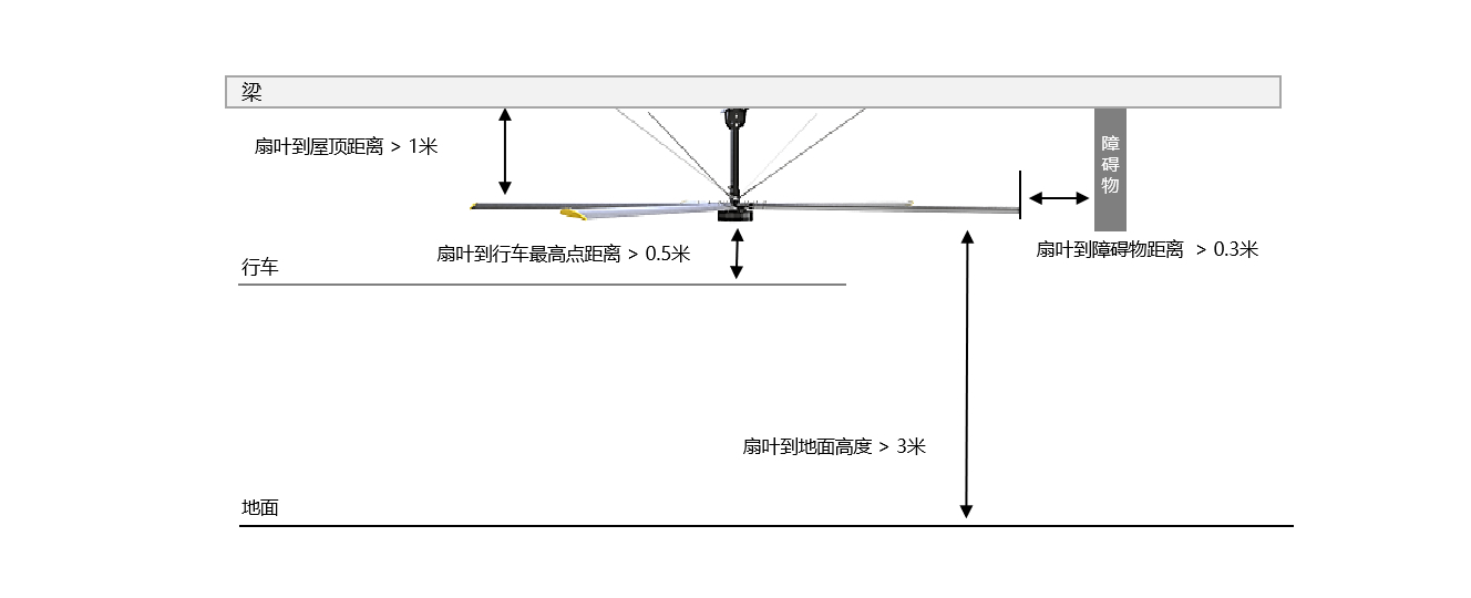 真正實(shí)現(xiàn)超大面積全方位覆蓋, 7.3米吊扇,大1500平米覆蓋面積