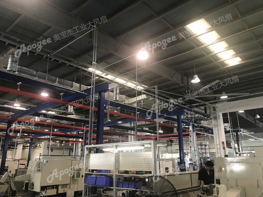 昆山機床車間屋頂復(fù)雜行車工業(yè)大風(fēng)扇案例