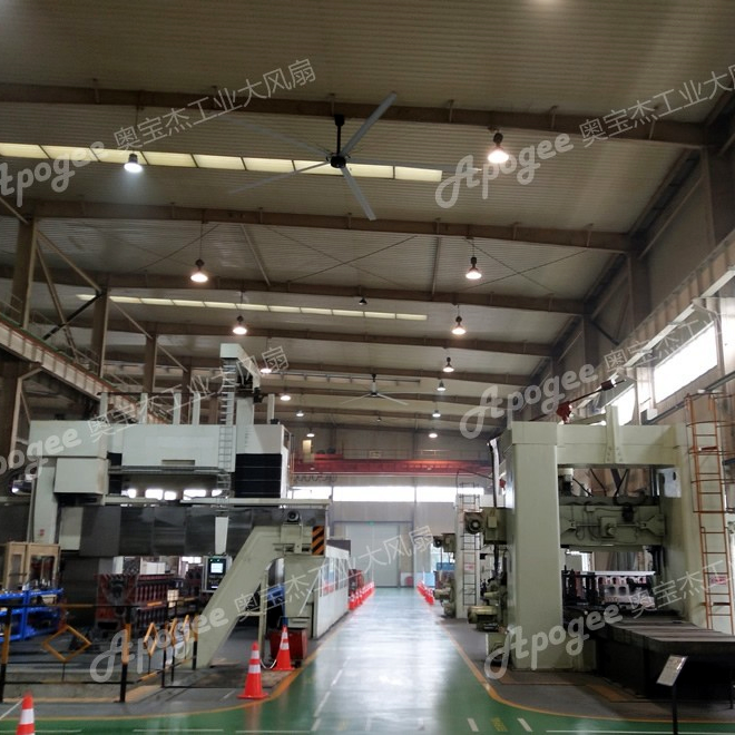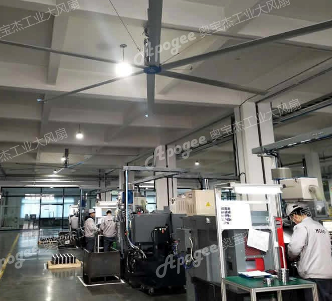 機(jī)加工車(chē)間安裝工業(yè)吊扇實(shí)現(xiàn)通風(fēng)降溫,在工作區(qū)域形成自然空氣環(huán)境,可有效預(yù)防職業(yè)病, 保障了人員與設(shè)備安全, 提高勞動(dòng)生產(chǎn)效率.